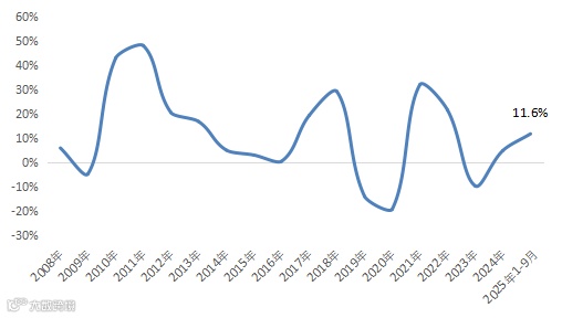 图5 2008年以来化纤行业固定资产投资增速变化