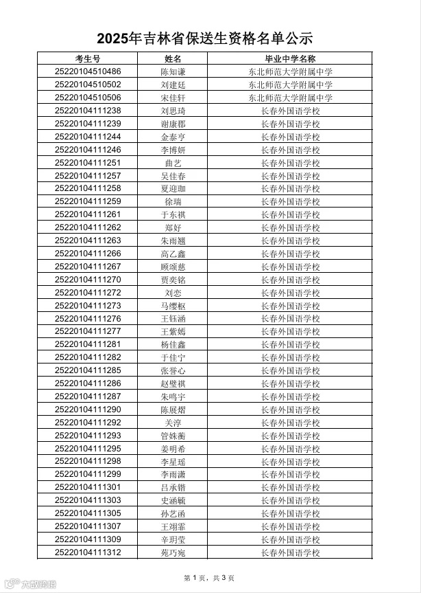 根据名单显示,其中有3名学子是师大附中竞赛保送生,其余107名学子均来自于外国语学校保送。