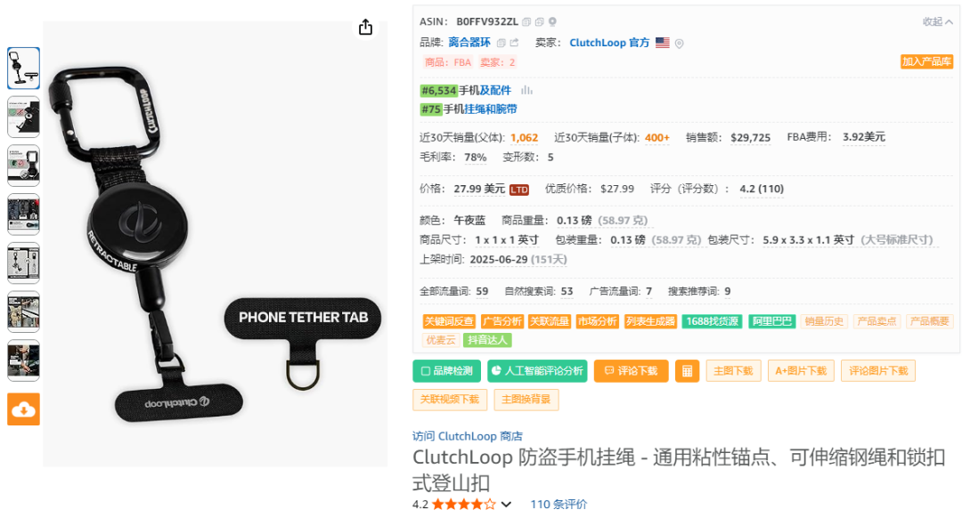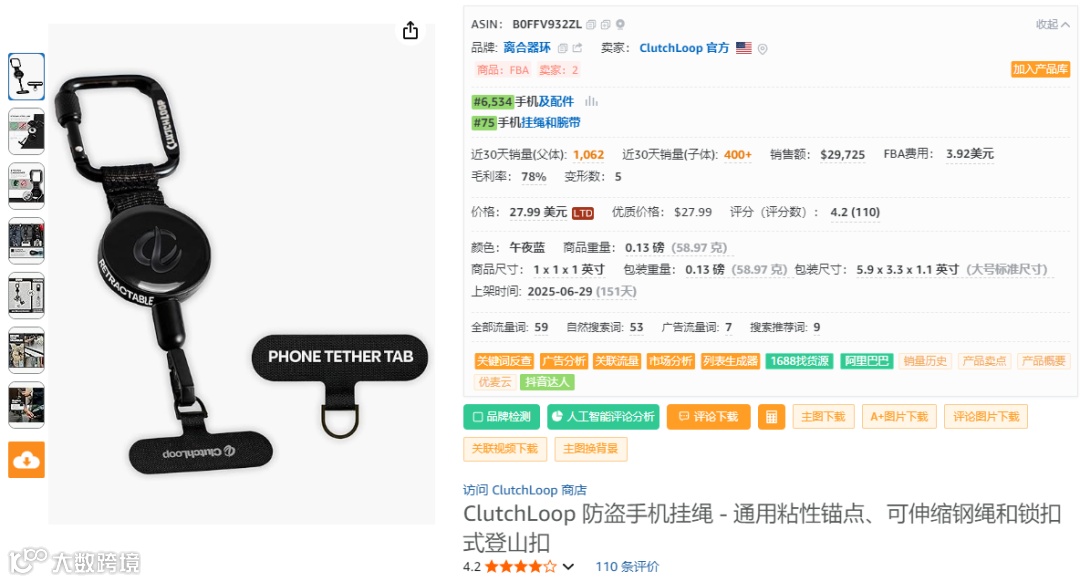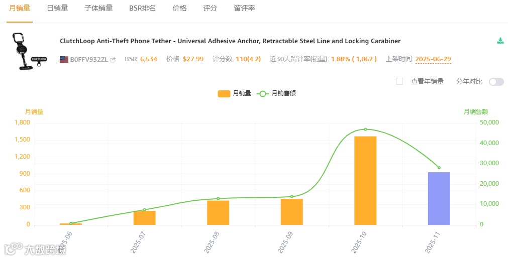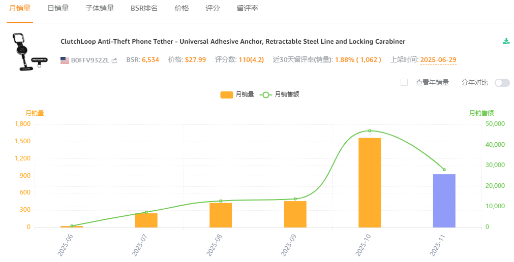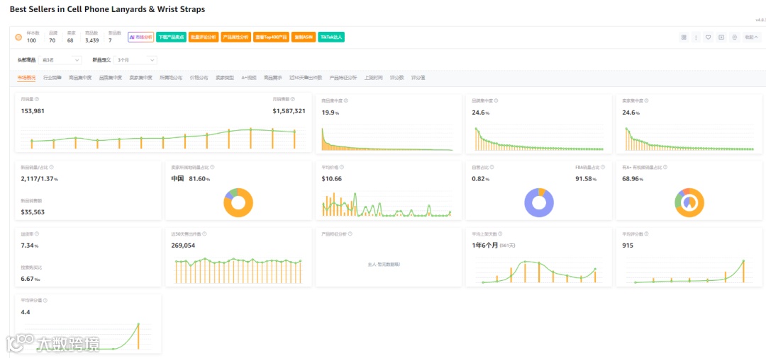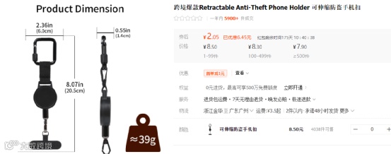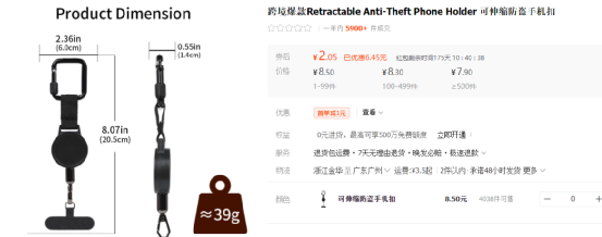 这款防盗手机挂绳从市场反馈来看,需求与销量都比较稳定,客单价与利润都非常高,新品销量占比足见成长机会。