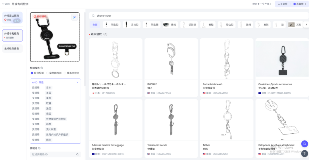 睿观专利检索发现,这个产品外观专利疑似侵权。其他专利没有查,风险未知。