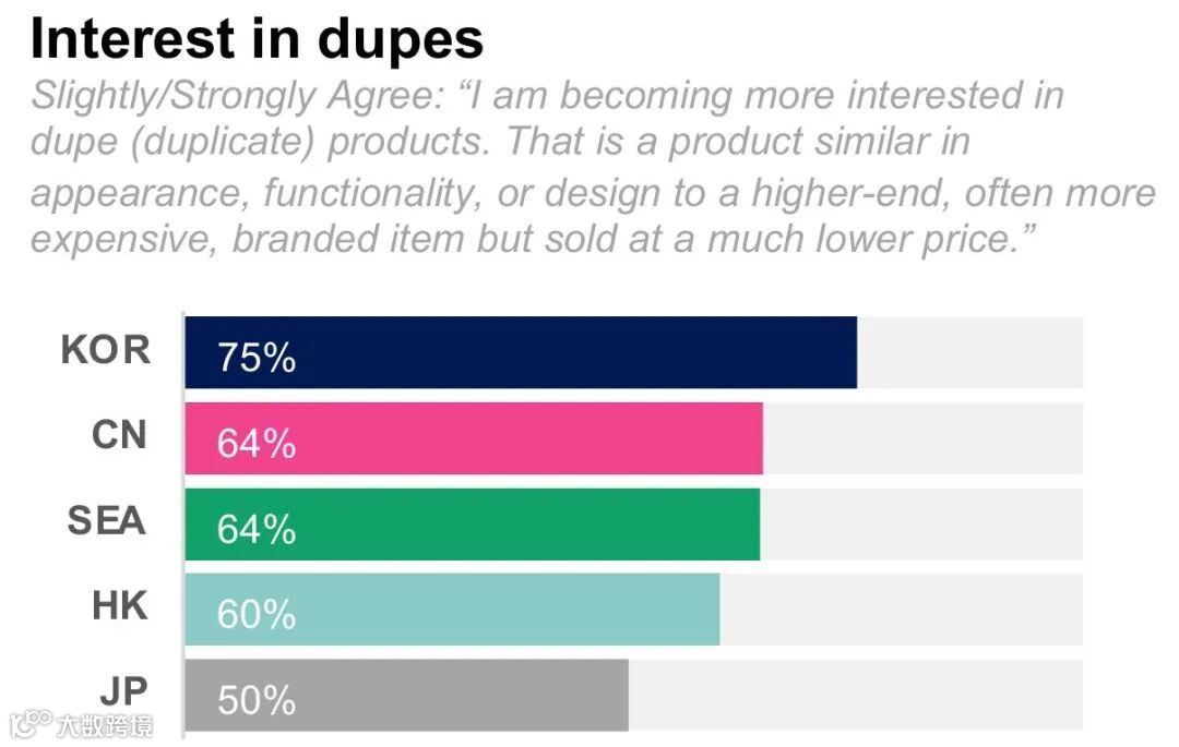 The research also suggests that as Asian consumers prioritise value, demand for dupes is also rising, with 75% of Koreans and 64% of Chinese and Southeast Asians open to more affordable imitations.