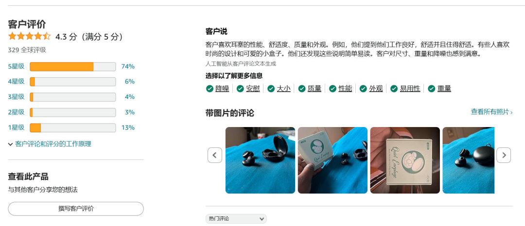 卖家爆款硅胶耳塞客单价在19.99美金,共有黑色和粉红色这2种不同颜色的变体可供消费者选择。其中最受欢迎的一款是黑色的变体,产品尺寸为1.65x1.65x0.47英寸、重量在0.63盎司、FBA运费为3.68美金。在产品的选择上,人们主要关注硅胶耳塞的降噪效果、戴在耳朵里的舒适度、质量和耐用性,以及价格高低等,部分群体也关注是否方便外出携带。
