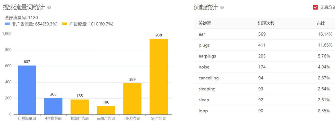 AMZ123获悉,店铺的流量来源主要集中在广告流量+自然搜索+少量站外。通过工具查询后发现,卖家在近1个月里为爆款投入了约1500+关键词,进入了搜索前3页的词共计有1120个。其中广告流量占比在60%,自然搜索流量占比在39%,引流投入较高。