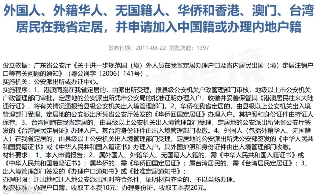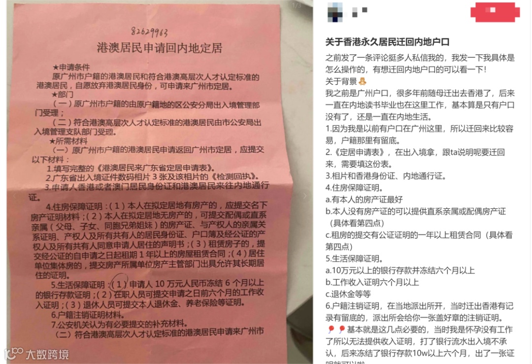 广东省公安厅明确:原广东户籍的港澳居民,在自愿放弃港澳身份的前提下,可申请返回广东定居[k]。