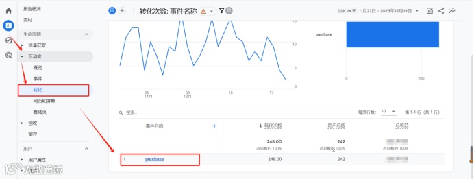追踪用户行为。GA4通过追踪事件来追踪用户在网站中的行为,包括网页浏览、提交表单、点击等,从而进一步了解用户的互动方式。 -