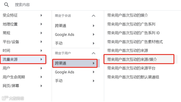 追踪用户访问网站的来源。GA4可以追踪用户访问网站的渠道来源,例如搜索引擎、社交媒体和广告等,可以通过数据指标了解不同渠道的效果。 -