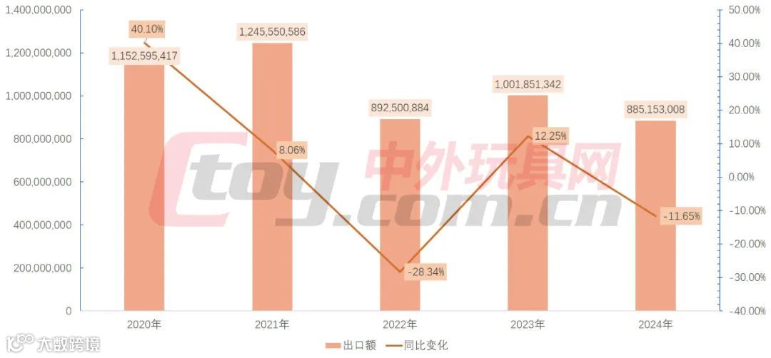 2024年中国玩具出口额同比下降1.7% 成熟市场稳中有增 新兴市场波动明显