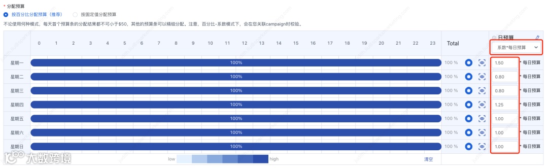 平台提供两种预算分配模式:按百分比和按固定值[[k]]。