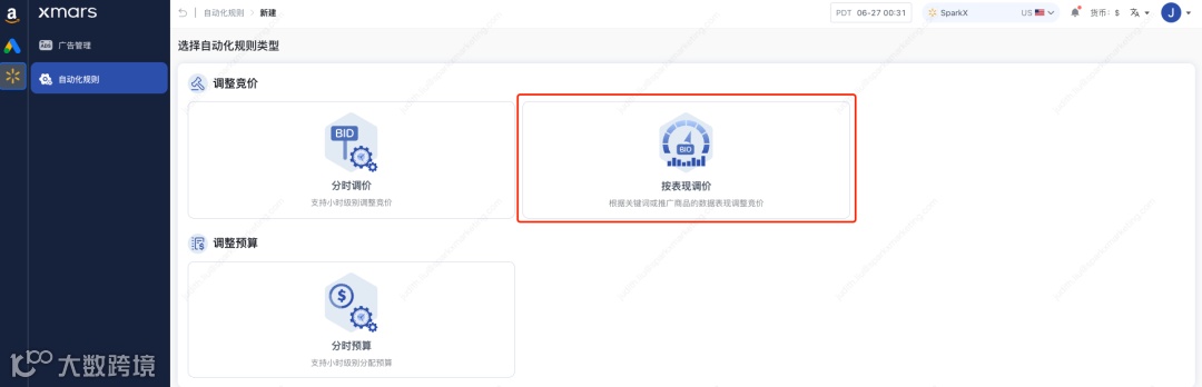 Xmars按表现调价功能支持根据关键词或推广商品的数据表现自动调整竞价[[k]]。适用于SP手动、SB、SV等广告类型,并支持SP自动广告按商品表现调价[[k]]。