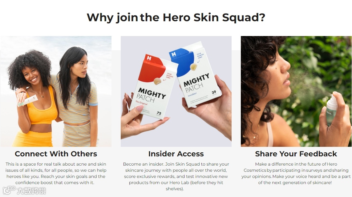 品牌社区:大多数消费者在碰到护肤问题时,都会寻求他人的帮助。Hero Cosmetics建立的品牌社区,为消费者提供了一个可以交流的平台,是能够有效提升消费者粘性的。