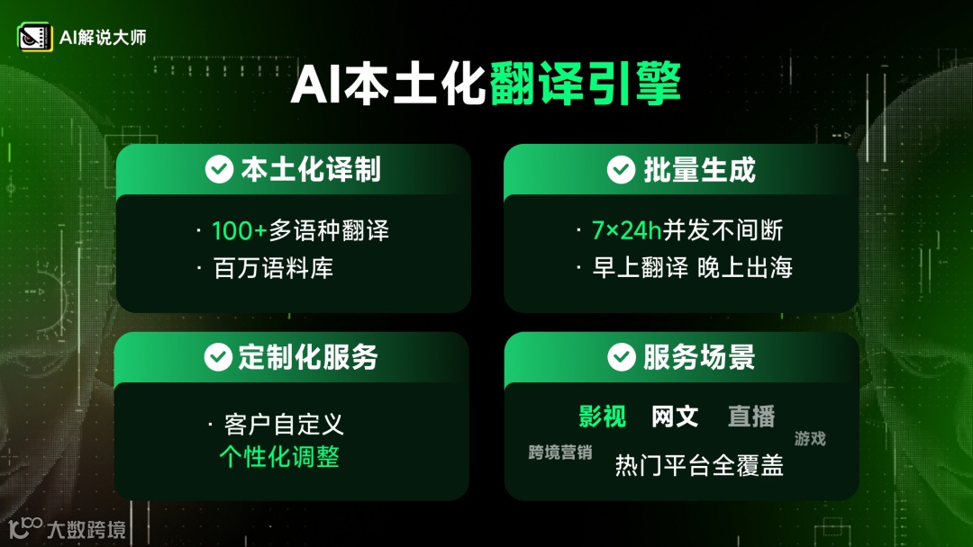 这正是AI解说大师为行业带来的全新答案:我们不是普通的翻译工具,我们是业界领先的内容本土化AI翻译引擎。