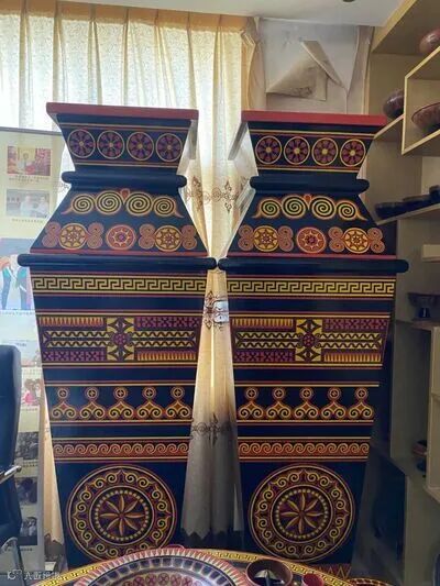 选料时,工匠需挑选纹理细腻、质地坚硬的桦木,经过晾晒、打磨等多道工序,让木胎呈现出温润的质感;制漆环节,需将天然生漆反复炼制,加入矿物颜料调配出红、黄、黑三色;绘画时,工匠无需底稿,凭着手艺与经验在器物上勾勒出羊角纹、日月纹、几何纹等图案,每一笔都流畅自然,每一个纹样都蕴含着对生活的美好期许……