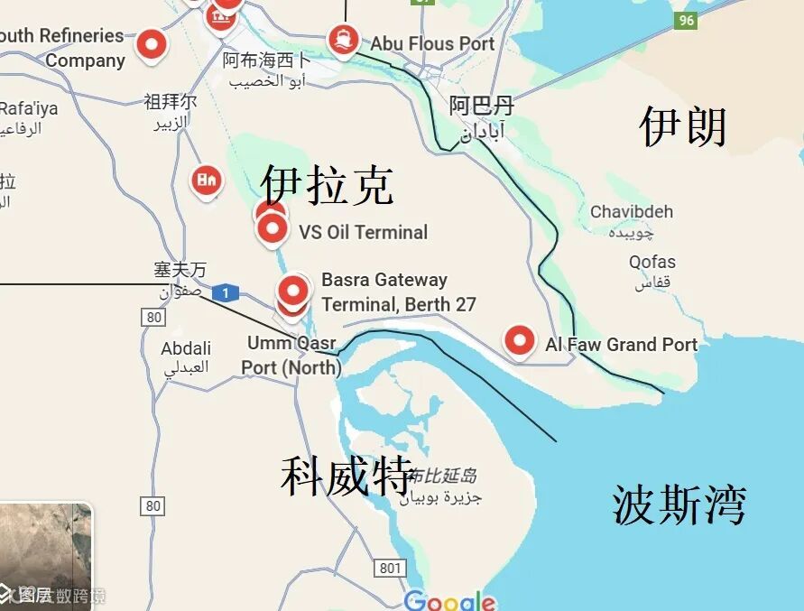 伊拉克的地缘位置在地图上并不复杂,却在战略现实中极为严苛。其南部唯一通往外海的窗口,仅为波斯湾海岸线上的不足60公里。这条狭窄走廊位于科威特与伊朗之间,两国均为区域性力量,在军事、能源、宗教等方面对伊拉克拥有天然影响力。这种空间的“锥形出口”结构,使得伊拉克对外能源通道在物理意义上就已严重依赖邻国宽容度。