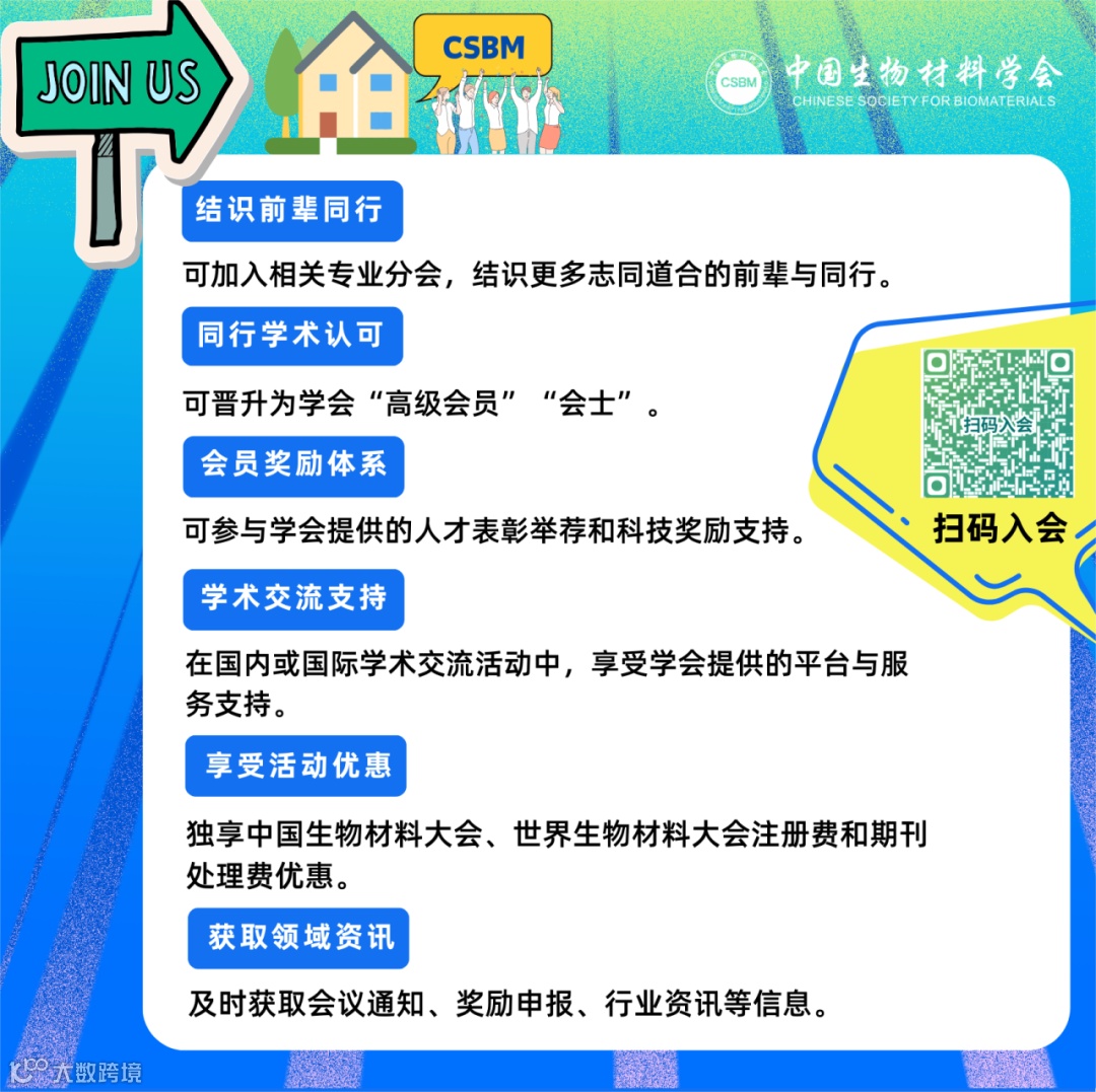 立足会员需求,提升服务能力。中国生物材料学会真诚期待并欢迎您的加入!