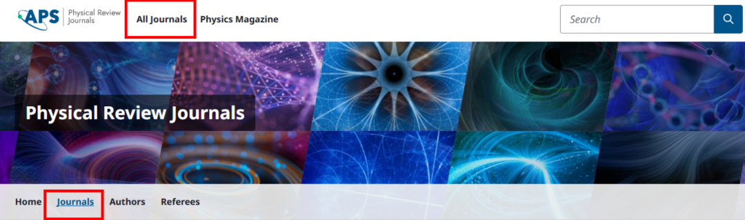 点击导航栏的 Journals/AII Journals,可以看到APS收录的全部期刊列表,点击具体期刊,即可浏览最新一期和过往各期的文章目录。