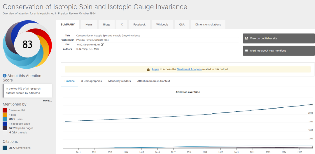 可以查看论文在社交媒体网站、报纸、政策文件、博客、维基百科以及其他许多来源的关注度以及学术引用影响力。