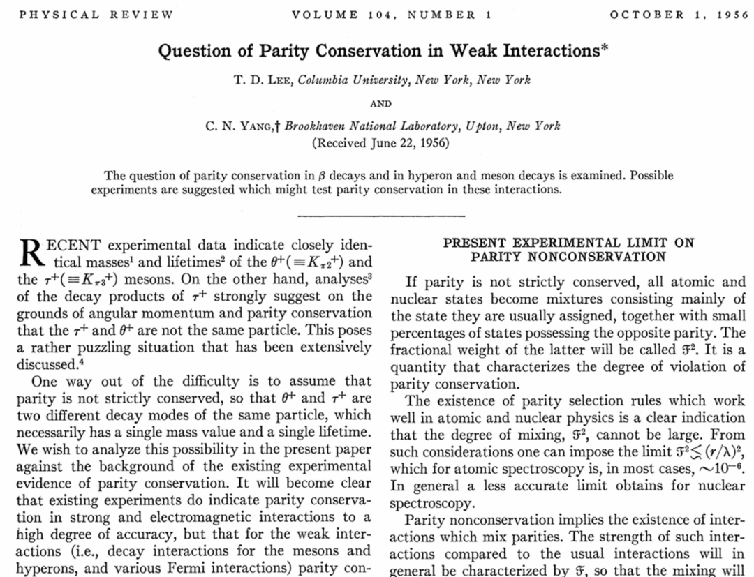 范例一:杨振宁先生与李政道合作提出弱相互作用中宇称不守恒的革命性思想,并获得1957年诺贝尔物理学奖,共同成为最早获得诺贝尔奖的中国人。
