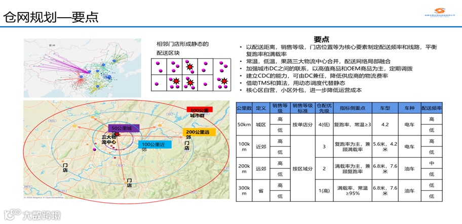 根据城区、近郊、远郊、跨城距离,结合销售数据配置差异化物流方案。