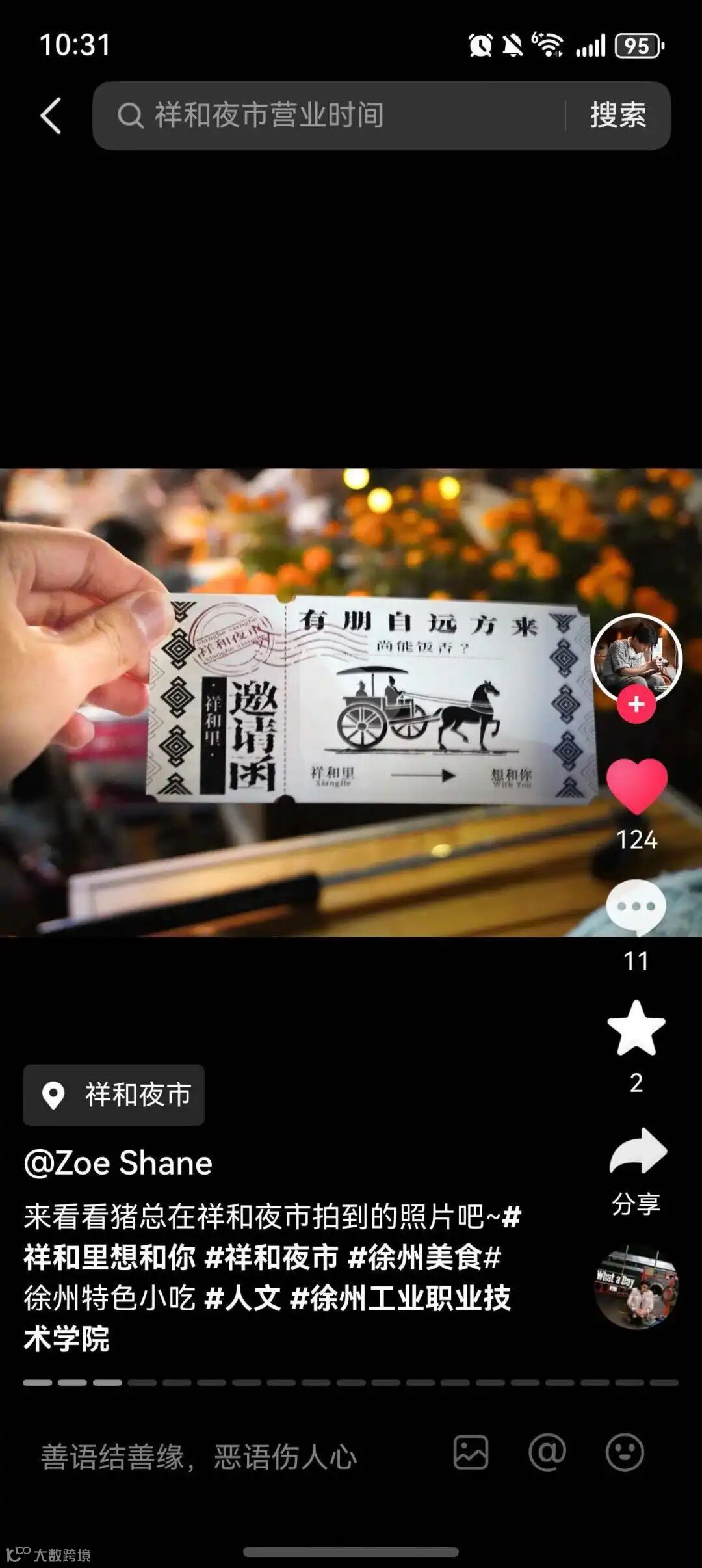 作为“传播合伙人”,青年们在活动结束后迅速行动,通过小红书、抖音等平台发布8条探店视频、2篇图文攻略,短短一个周末便收获全平台超3000人次浏览、400余次点赞和近200次转发。后续,环城街道团工委将整合优质内容,制作“祥和夜市美食地图”,进一步放大传播效应,构建起“青年种草—大众打卡—口碑传播”的长效链条,让夜市承载本土记忆的地道风味持续走出辖区、圈粉更多市民。