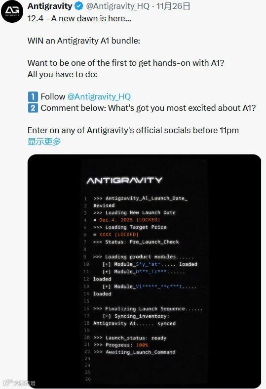 在预告中,价格仍然保密,并且尚未公开确认将提供何种捆绑包(仅无人机、畅飞套装等)。但将发布时间推迟到12月似乎是一项战略举措:Antigravity希望在对手的360全景无人机产品上市之前抢占市场,以获得先发优势。