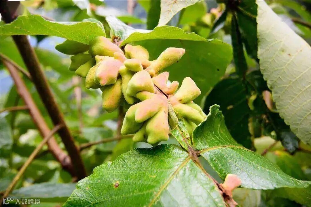 这层白霜,用手指醮点放在嘴巴里面一吮,咸咸的,在以前,那个物资匮乏的年代,没有盐吃的时候,农村的老一辈会去山上寻找这种盐肤木,把这些白霜刮下来,拿回家里面去,当作食盐来使用。成了古人应急的“天然食盐”,因此,盐肤木这种带咸味的树就传开了。