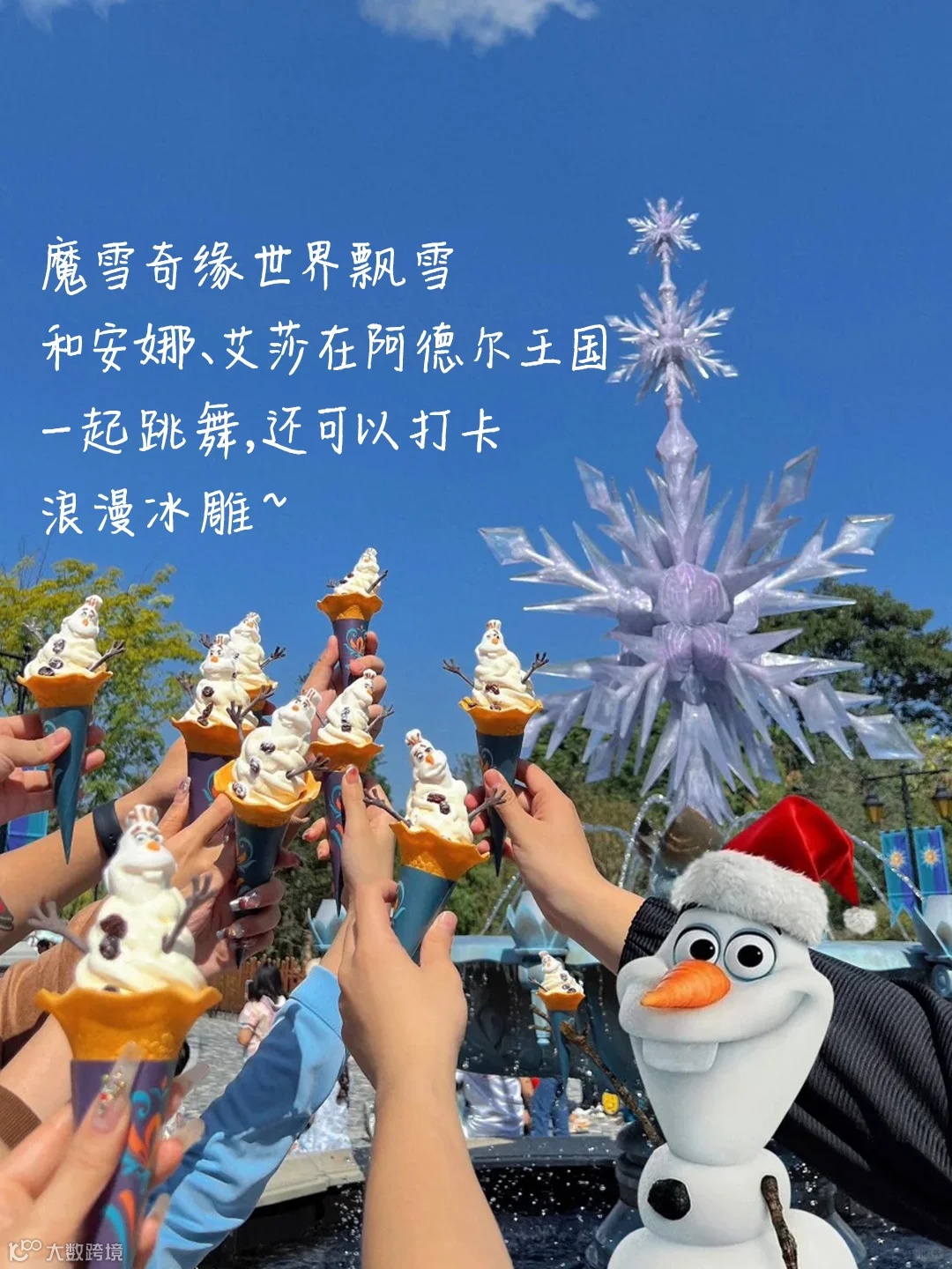 和安娜、艾莎在阿德尔王国一起跳舞,现场真的有飘雪,还可以打卡浪漫冰雕和小雪人~