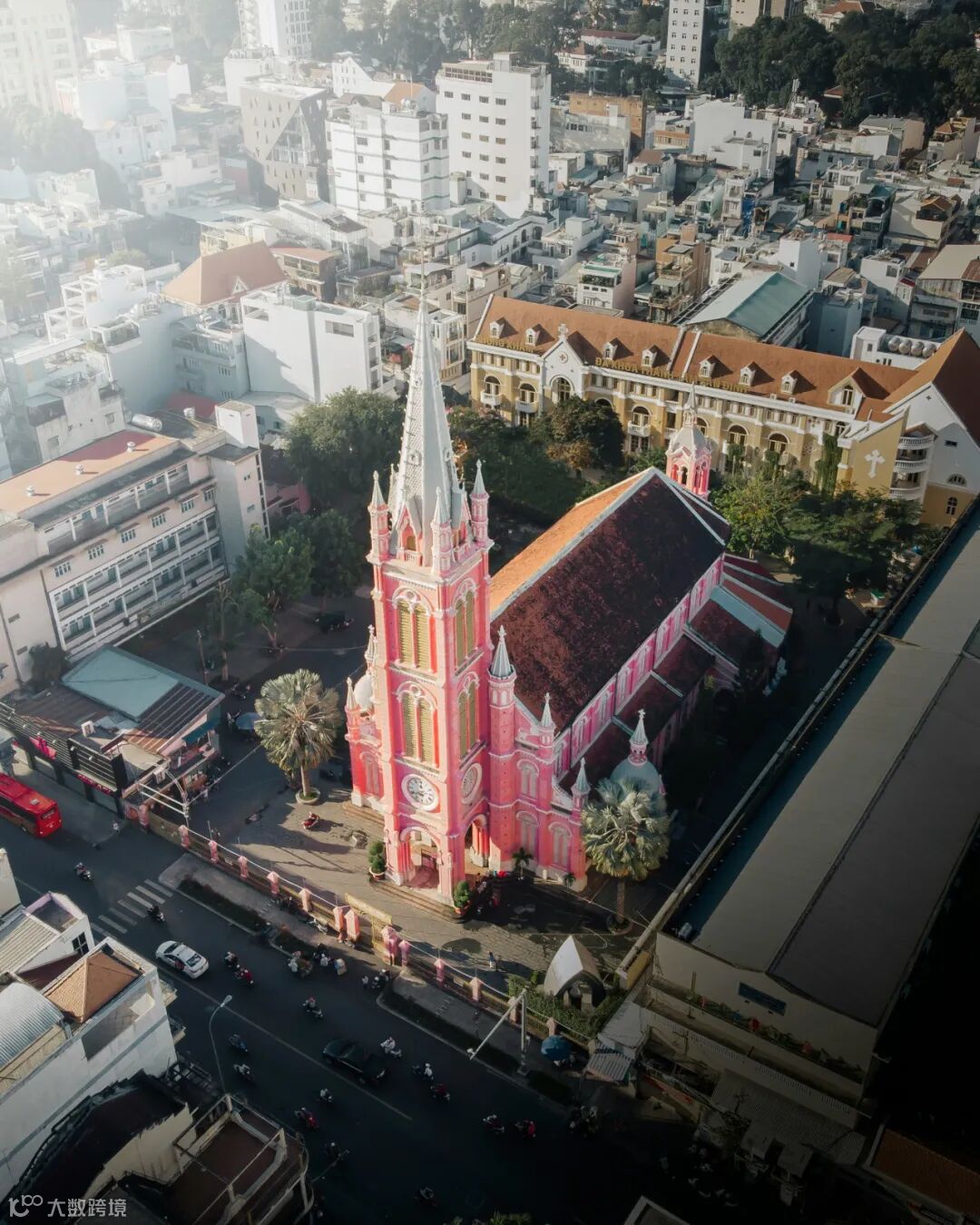 必打卡NO.1!教堂建于1876年法国殖民时期,最吸引人的莫过于它梦幻的粉红色外墙,在晴空下与蓝天形成鲜明对比,甚至有点迪士尼公主城堡的感觉。内部同样以粉色调为主,搭配彩色玻璃窗,阳光透进来时更显梦幻斑斓。