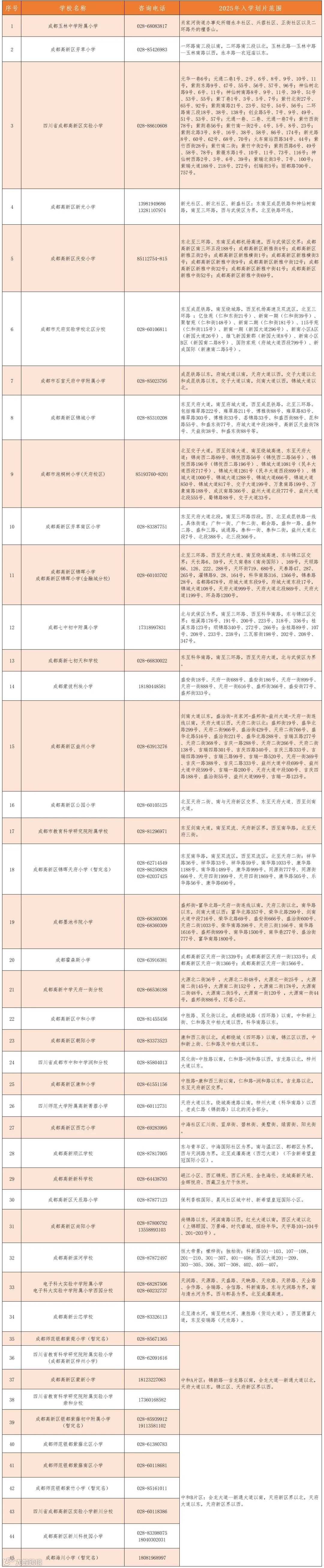 3. 成都高新区行知小学更名师范银都紫苑小学(暂定名);成都高新区银都紫藤初中东区学校2025年若登记人数不足一个班不招生。