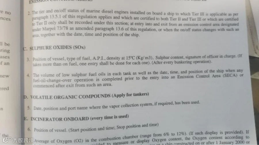 在排放控制区(如波罗的海、北美水域)须使用硫含量不超过0.1% m/m的燃油[k]。