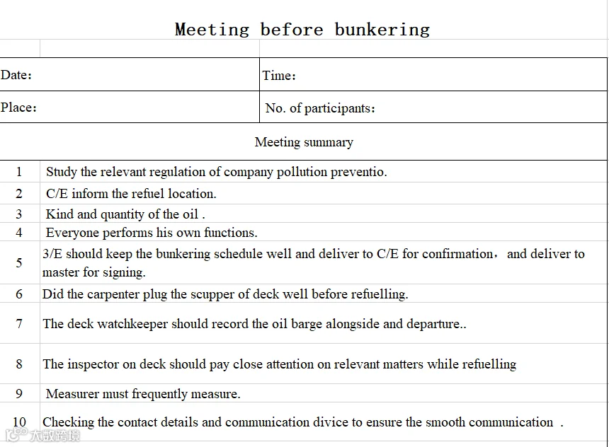 二、加油前会议与培训(Pre-bunkering Meeting and Training)