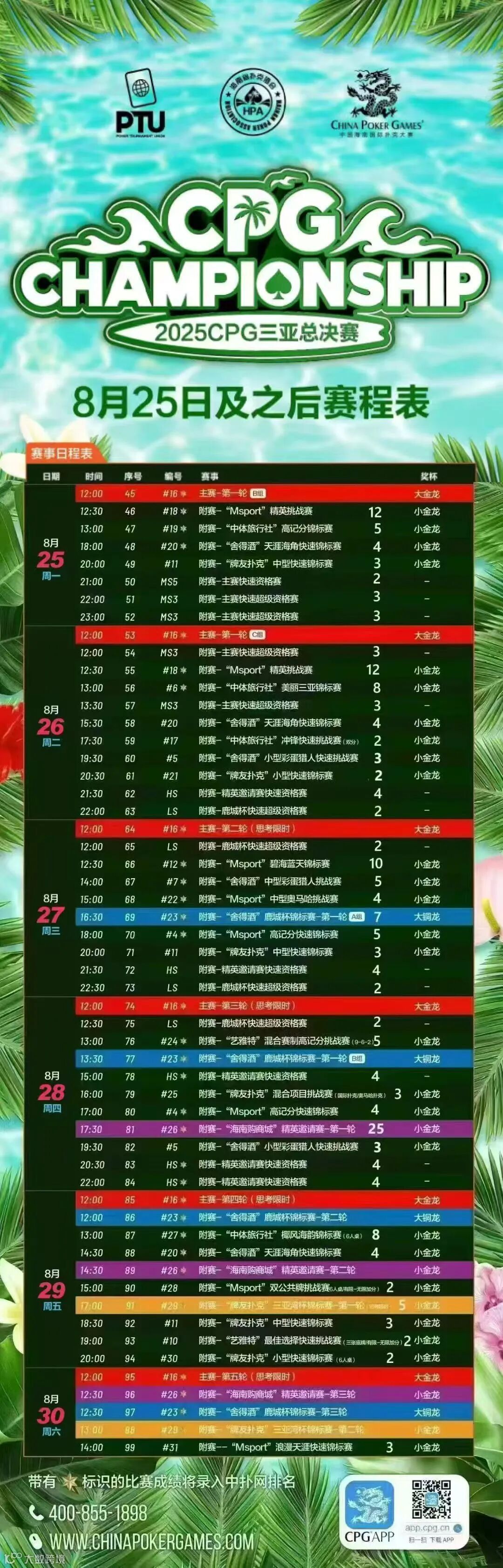 当晨光为 2025 CPG 三亚总决赛的赛场镀上一层微光,这场竞技扑克盛宴也正式迈入更为关键的主赛事第二轮 —— 相较于首轮的 “突围战”,今日的赛场更像是一场关乎 “生存资格” 的密集厮杀,入围圈的残酷挤压感从赛事开启的第一秒便扑面而来。