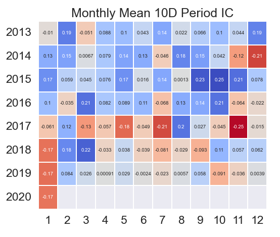 可以看出到IC值序列随时间的变化,较好的参考值可以是IC绝对值均值的大小,以及他们是否有一边倒的倾向。