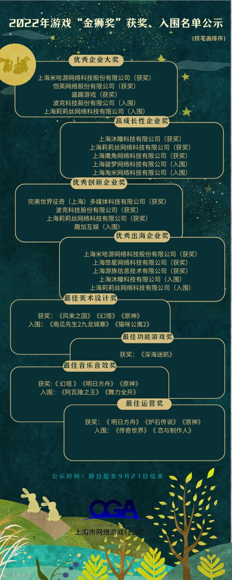 2022年游戏“金狮奖”名单公布,沐瞳荣获“高成长性企业”,入围“优秀出海企业”