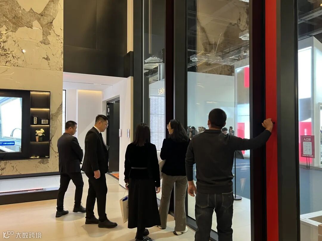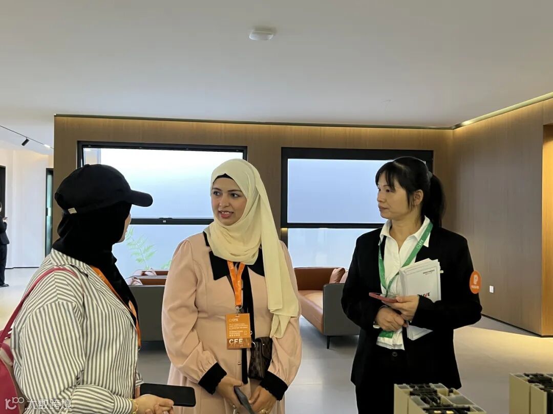在工作人员的引导下,参观者近距离触摸及使用产品,并就产品细节提出疑问。小到五金配件的品牌,大到门窗的隔音隔热性能、定制化设计方案,工作人员都一一专业解答。