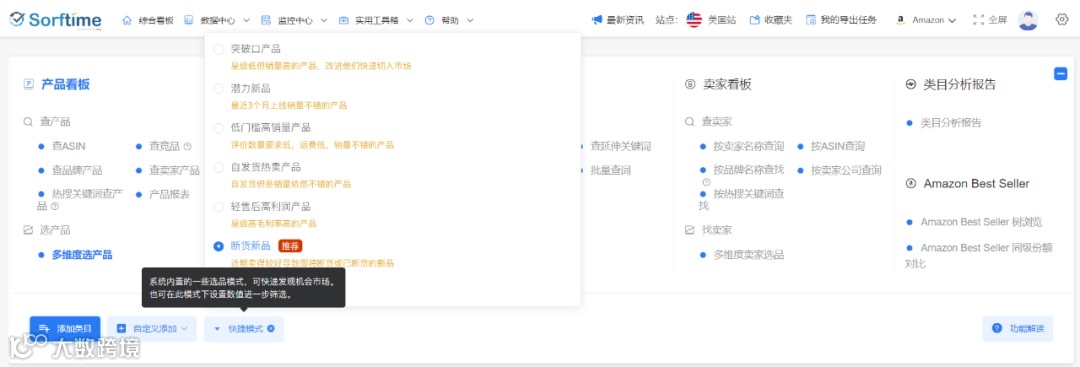 刚才介绍的是常规的选品手段,不但需要专业知识,还需要长期不间断的反复练习才能选出更接近爆款的产品。如果想简单直接,那就试用下多维度选品的断货新品,直接查看被卖断货的产品。