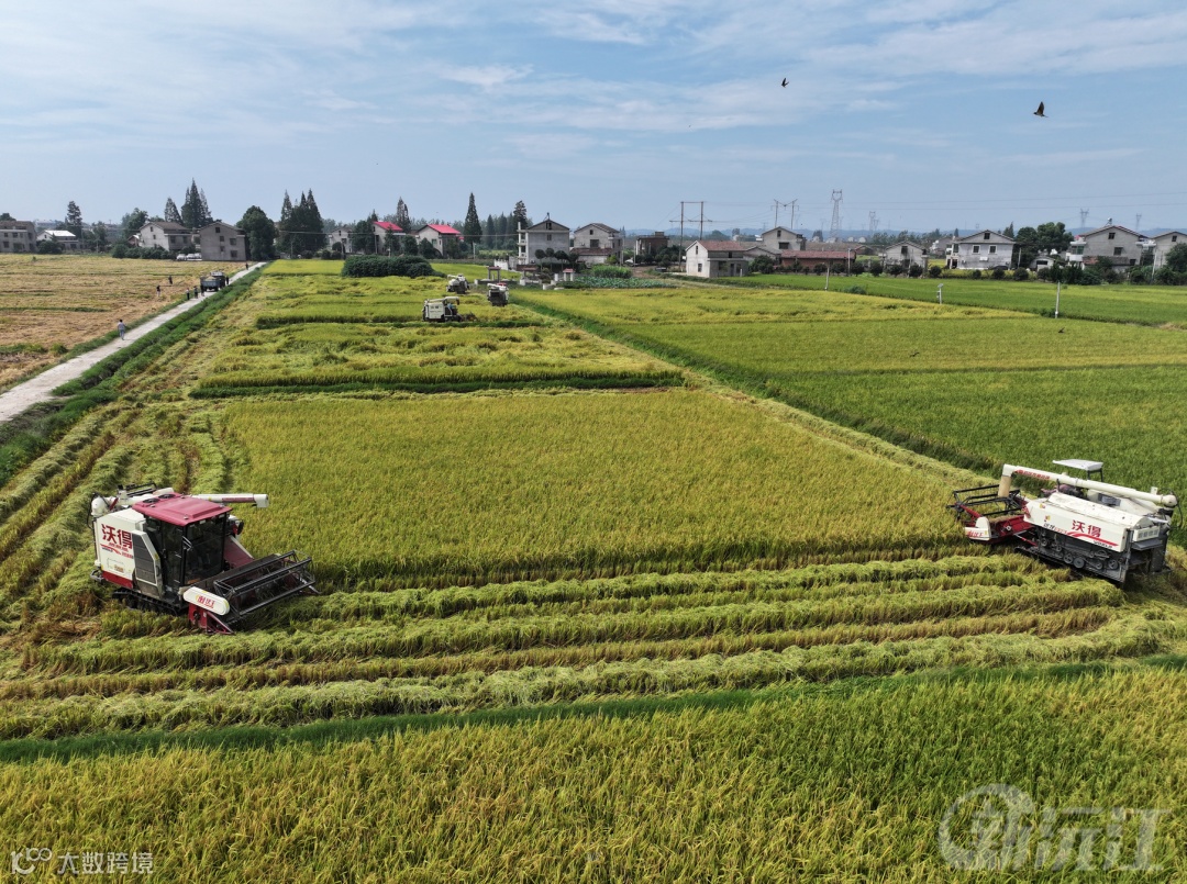 10月2日,国庆长假的第二天,沅江市共华镇福安村的2700多亩稻油轮作稻田里就响起了收割机欢快的歌声。5台高速收割机一字儿排开,在金黄的田野上收割着沉甸甸的稻谷。这2700多亩稻田属于福安村集体经济所有,用于稻油轮作。中稻他们选用优质稻种,同时采用精耕细作,在播种和病虫害防治中全部采用机械化和飞航作业。