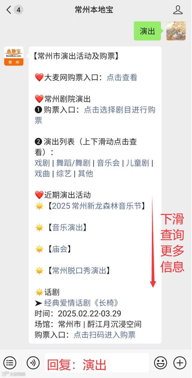 点击识别下方二维码,关注【常州本地宝】,点击发消息,在聊天对话框发送“演出”,即可获取2025常州演出活动查询入口、音乐演出/话剧/脱口秀等活动详情+购票入口、常州庙会活动等信息。