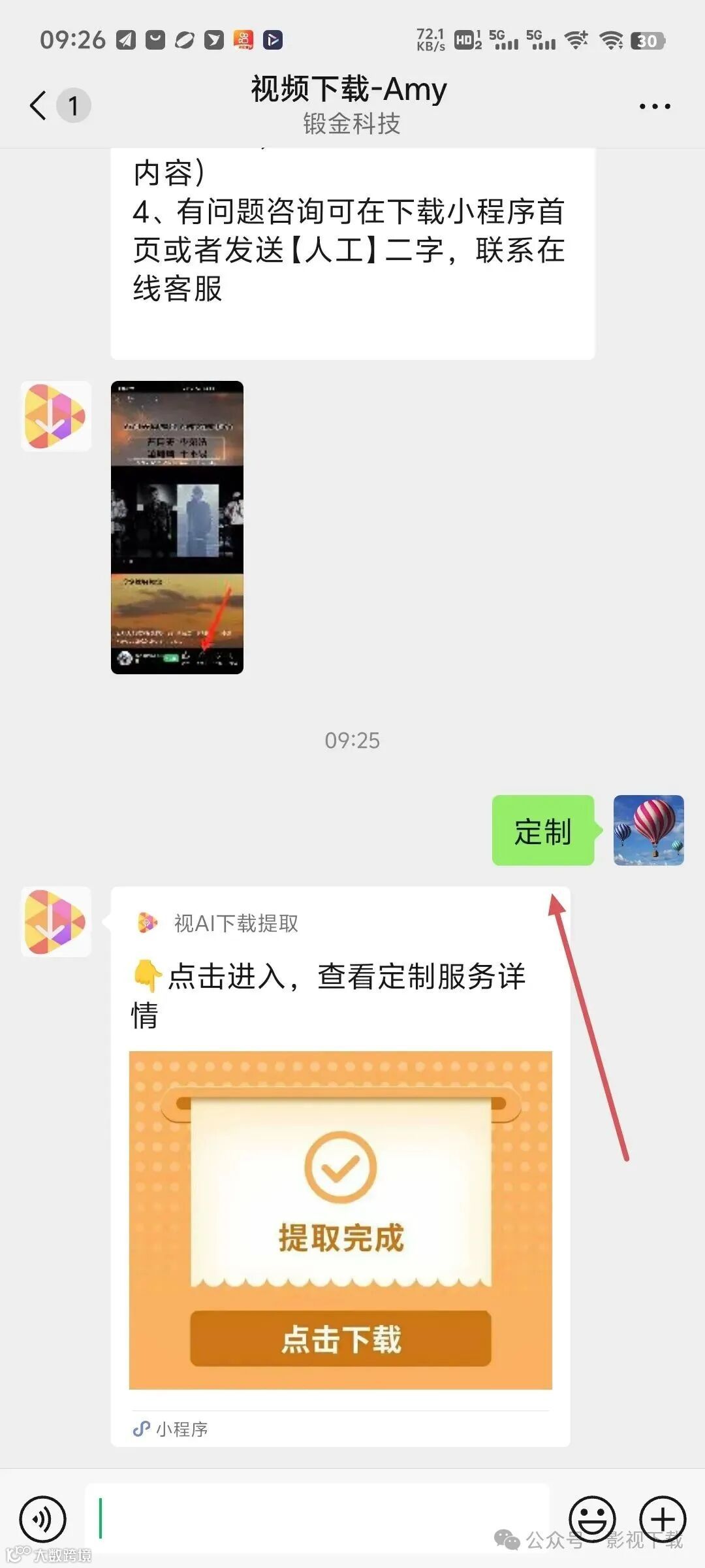 只需要在企业微信客服机器人发起定制请求,告知客服您需要下载的直播回放内容,客服将会处理并将视频发送给您。