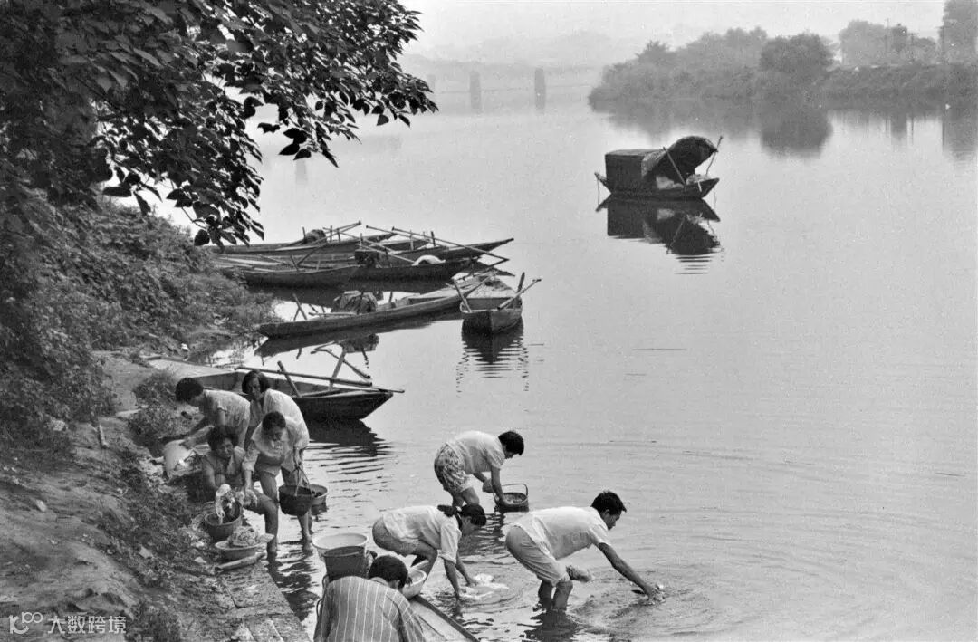 1994年 市民在上浮桥上钓鱼 洪兵/摄