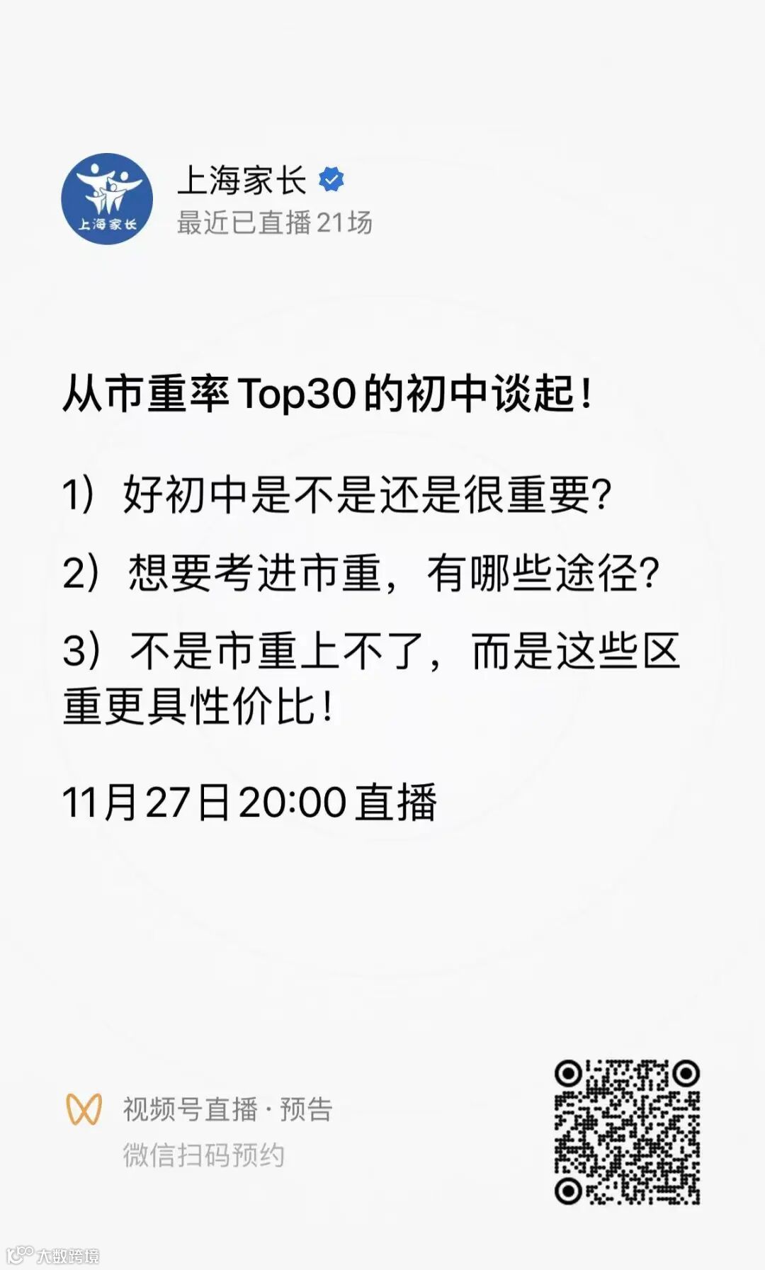 上海家长中考专场直播预约