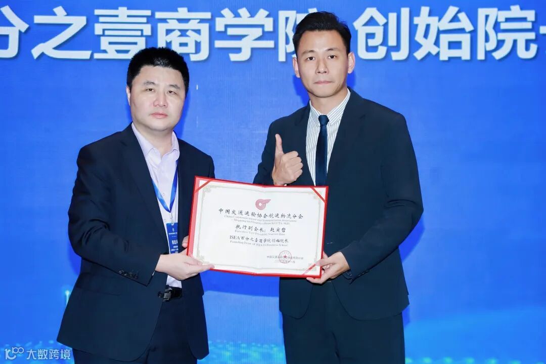 陈宏兵为ISEA百分之壹商学院创始院长赵寅哲颁发新晋执行副会长证书。