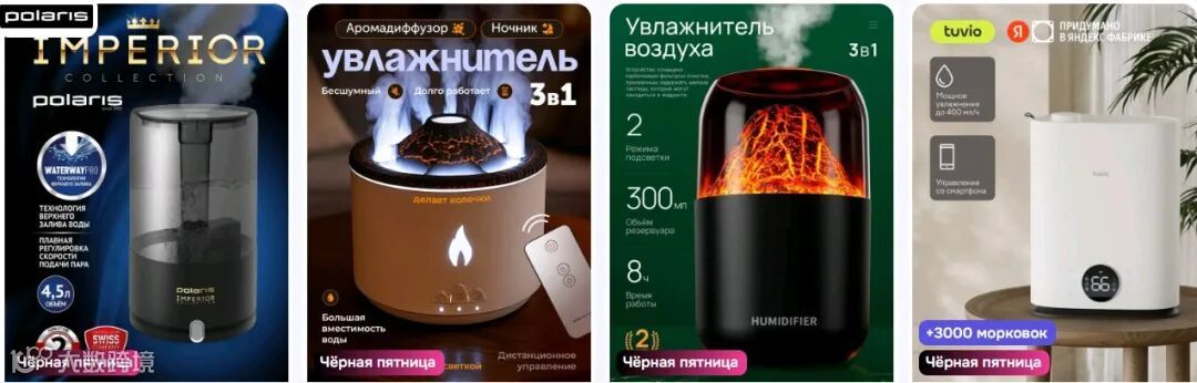 加湿器:热销“三合一多功能款”,集成香薰与夜灯功能,8L大容量水箱更受欢迎;