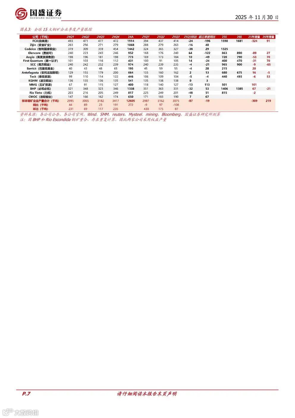 2025年,全球主要铜矿遭遇超预期扰动,如Kamoa-Kakula矿震、Grasberg泥石流等事件,导致四座矿山合计下调产量指引49万吨,奠定2026年短缺基础。头部矿企前三季度产量同比下滑,对未来两年的增产指引普遍悲观,预计2026年全球铜矿新增产量仅63万吨,难以匹配需求增速。