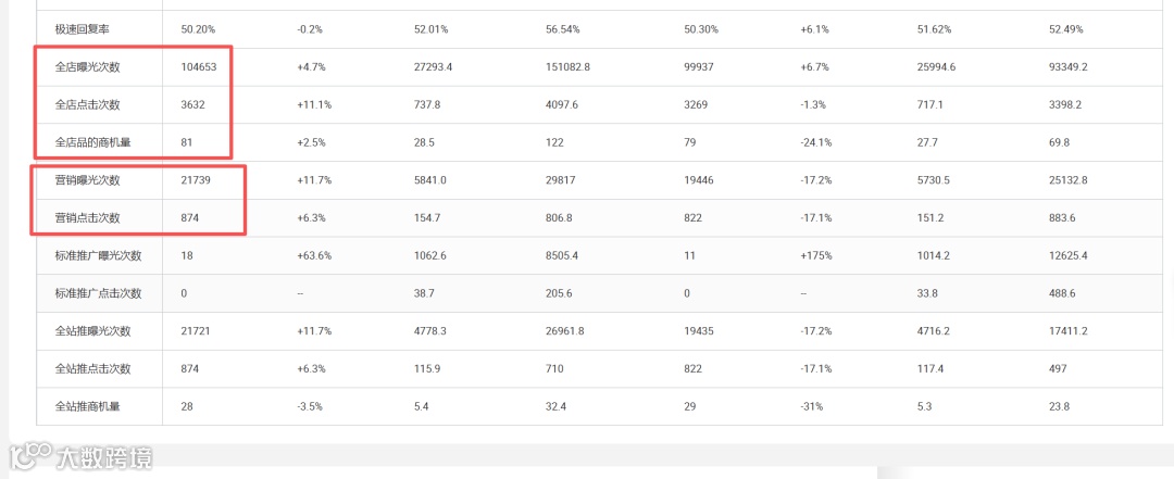 导读:最近这个数据概览进行了新升级,多了很多数据,目前能看到的总数据项有28个。特别增加了全店的曝光和点击,以及直通车的营销曝光和点击。