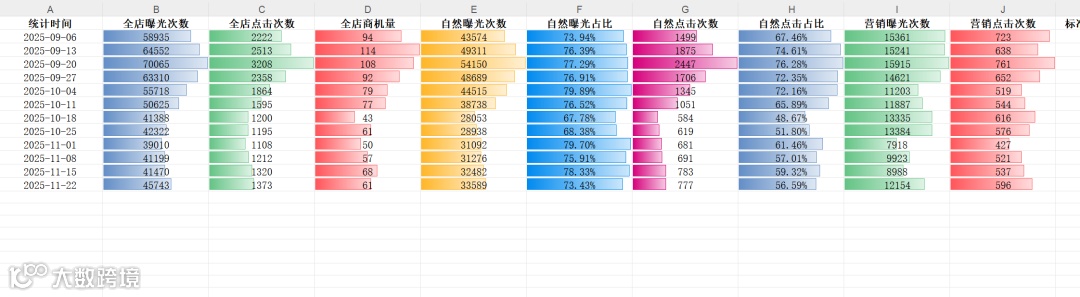 自然曝光占比 = (自然曝光次数 / 全店曝光次数)× 100%
