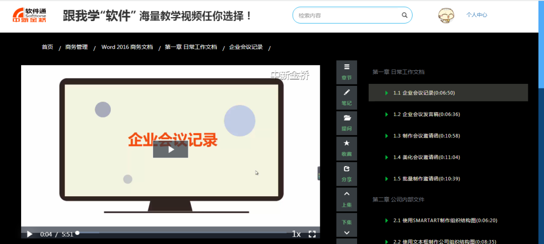在视频页点击“开始学习”,即可观看视频,跟随老师一起学习软件技能。