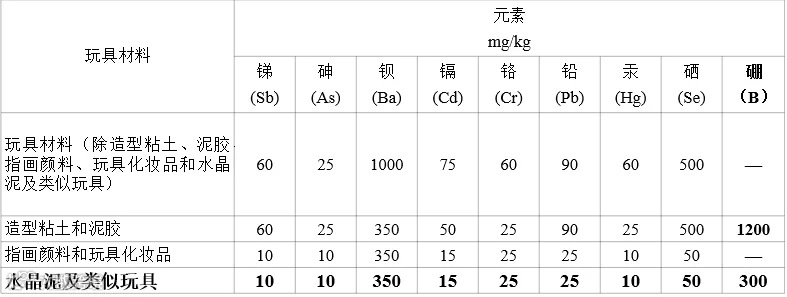 1.修订了某些元素迁移的要求,增加硼元素,且扩大了水晶泥及类似玩具的限制要求;