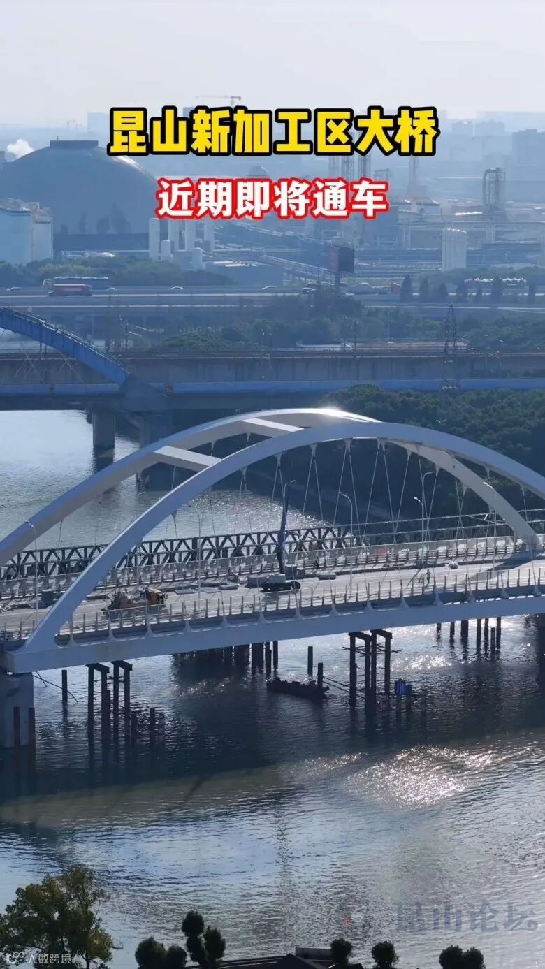 近日,昆山论坛网友“雪狼春”发帖爆料:久等了!交通再次大升级,昆山新加工区大桥即将通车啦,这也是青阳港航道升级的最后一座大桥。