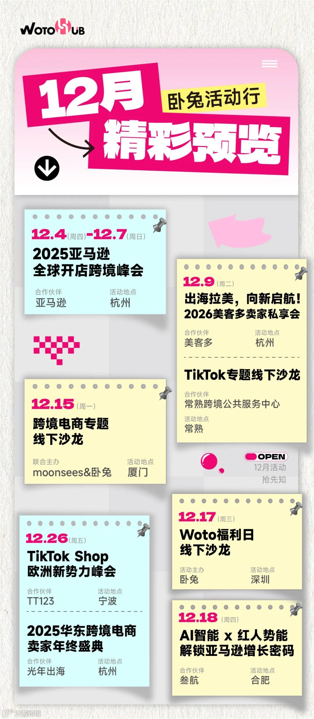 11月硕果累累,12月蓄势待发。卧兔将在2025年末推出更多重磅活动与年终盛会,持续为跨境品牌提供战略支持与资源链接。敬请关注官方渠道,获取最新活动资讯。