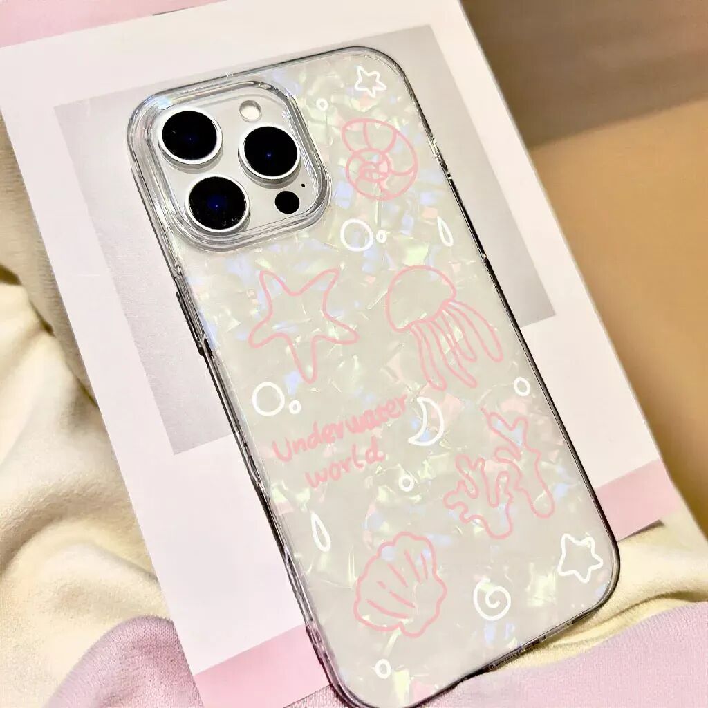 Ốp lưng Vỏ Đại Dương Đầy Màu Sắc, Trong Suốt Hình Ba Chiều Laser Mềm TPU Sao Sứa Tương Thích Với nhiều dòng iPhone